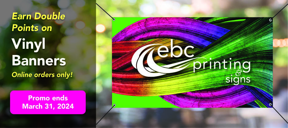 From March 1-31, 2025, earn double EBC Reward Points on all vinyl banner orders placed online! Now is the perfect time to level up your marketing while earning rewards for your next purchase.