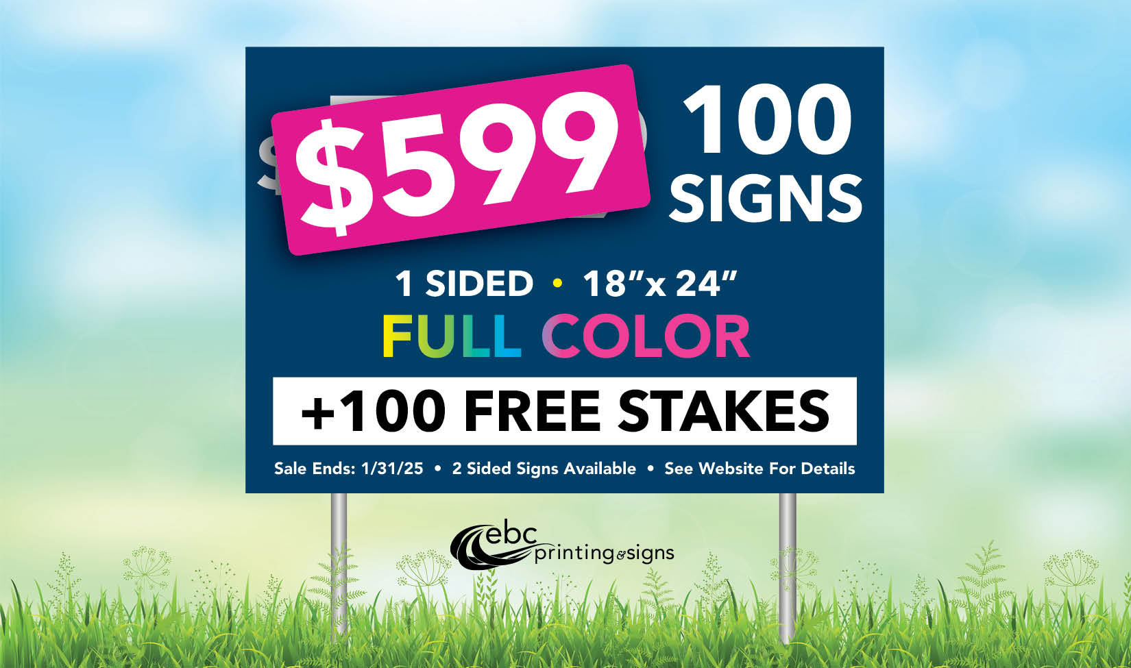 This month only, EBC Printing & Signs is offering a Yard Sign Sale! Take advantage of the special offers, sale ends January 31, 2025!